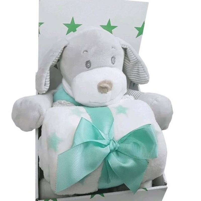 Комплект состоит из мягкой игрушки и уютного флисового пледа.